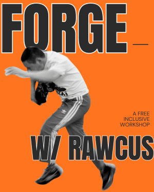 FORGE is an inclusive, participatory workshop that offers insight into the devising practices and processes of the Rawcus room.